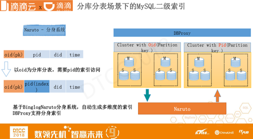 当然这个问题我们使用了分布式事务产品也可以在技术层面解决,但使用起来有些繁琐,所以我们从另一个维度进行了尝试。假设仍然是订单ID和乘客ID的两个维度,我们实现了分身系统,把所有的来自于主库的数据更新完之后,通过binlog复制到另外一个表里面去。逻辑是自动完成的,也就相当于在做创建表的时候,创建一个索引,在分库分表情况下创建一个主key,然后在索引Key的情况下,自动把数据复制到另外一张表里,在DBProxy往下查询时,自动识别,直接查询。